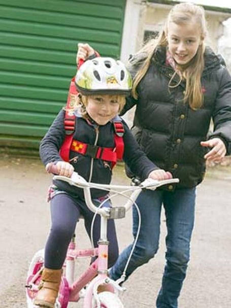 Sky Ballantyne, of Haberdashers’ Monmouth School for Girls, created Crikey Bikey harness 18 months ago. The harness is designed to help young children learn to ride a bike safely.