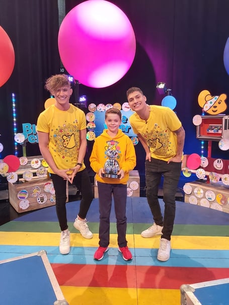 He was presented with a silver pudsey trophy and a rare silver Blue Peter badge by show hosts Joel and Richie and ‘The Body Coach’ Joe Wicks.