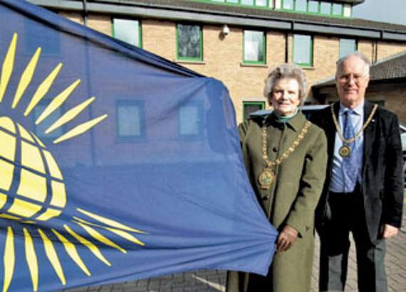 Chairman of the Forest of Dean District Council, Cllr Jane Horne, read the Commonwealth Affirmation before raising the flag outside the front of the council offices in Coleford.