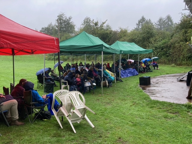 Every member of the audience, plus the volunteers who ran the event, managed to get under cover at the outdoor arena as gazebos had been pegged firmly to the ground.
