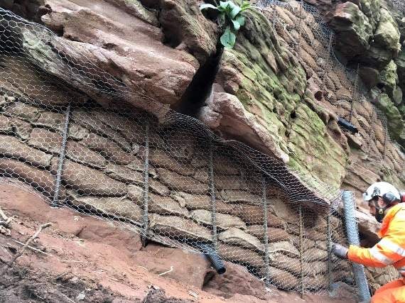 Workers have now begun installing sand bags and mesh in the rock face before adding spray concrete.