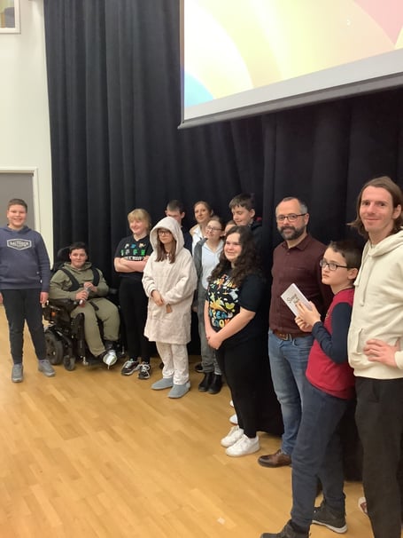 Following successful launches in Usk and Cardiff, Daniel McGowan’s children’s book, ‘Strange Head Fred’ has been enthusiastically welcomed by Ysgol Y Deri in Penarth, the country’s leading school for differently abled children.