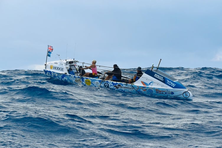 There is an ‘oar-some’ 5,000m of water between their five-man Team FlyinFish ‘Voyager’ boat and the bottom, as they continue to battle turbulent seas and exhaustion.
