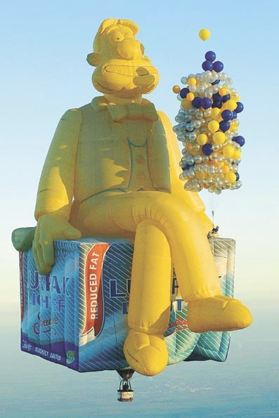 For the first 5,000ft he was attached to Douglas the Lurpak Lighter hot air balloon after which he cast off and carried on his accent alone.