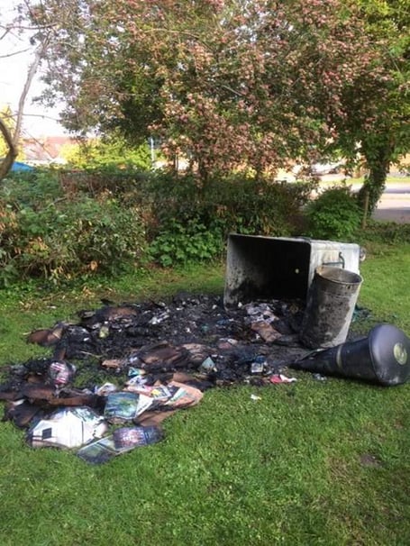 Then it was emptied and set on fire, alongside the litter bin beside Newent Lake.
