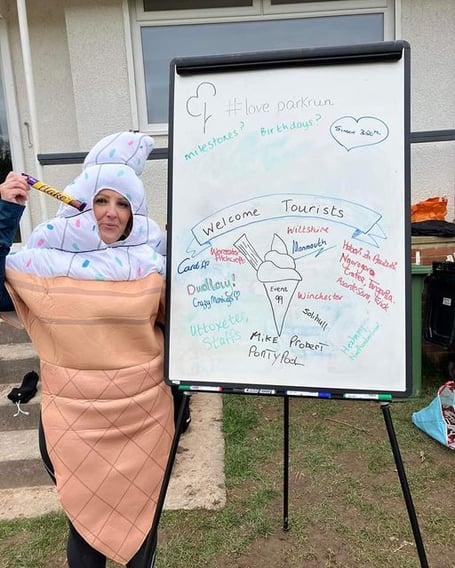 PARKRUN director Cat Lane went all 99 on those turning out for Saturday’s Ross 5k – by dressing up as an ice cream and handing out Flake chocolate bars to mark the 99th running of the weekly event.